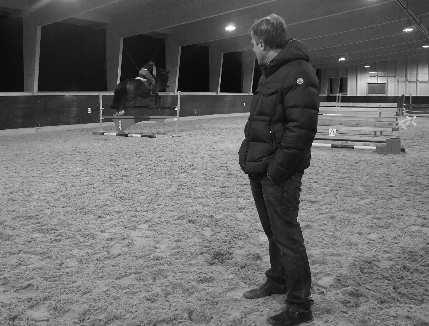 Begrenzt wird unser ruhiger Innenhof auf der einen Seite mit dem Stall und der anderen Seite mit unserer großen Reithalle. Die Reitfläche der Halle hat 22x84m und die Tribüne erstreckt sich auf der kompletten Nordseite entlang.